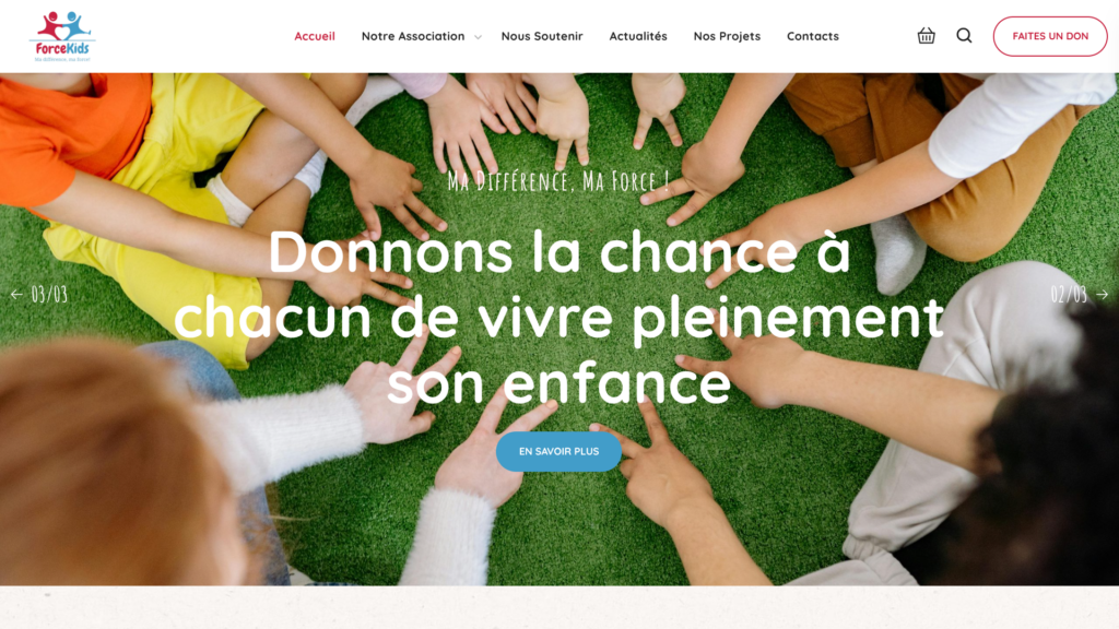 Dans le cadre du projet ForceKids, j’ai participé à la création du site internet de l’association, développant mes compétences en communication digitale et gestion de projet web.