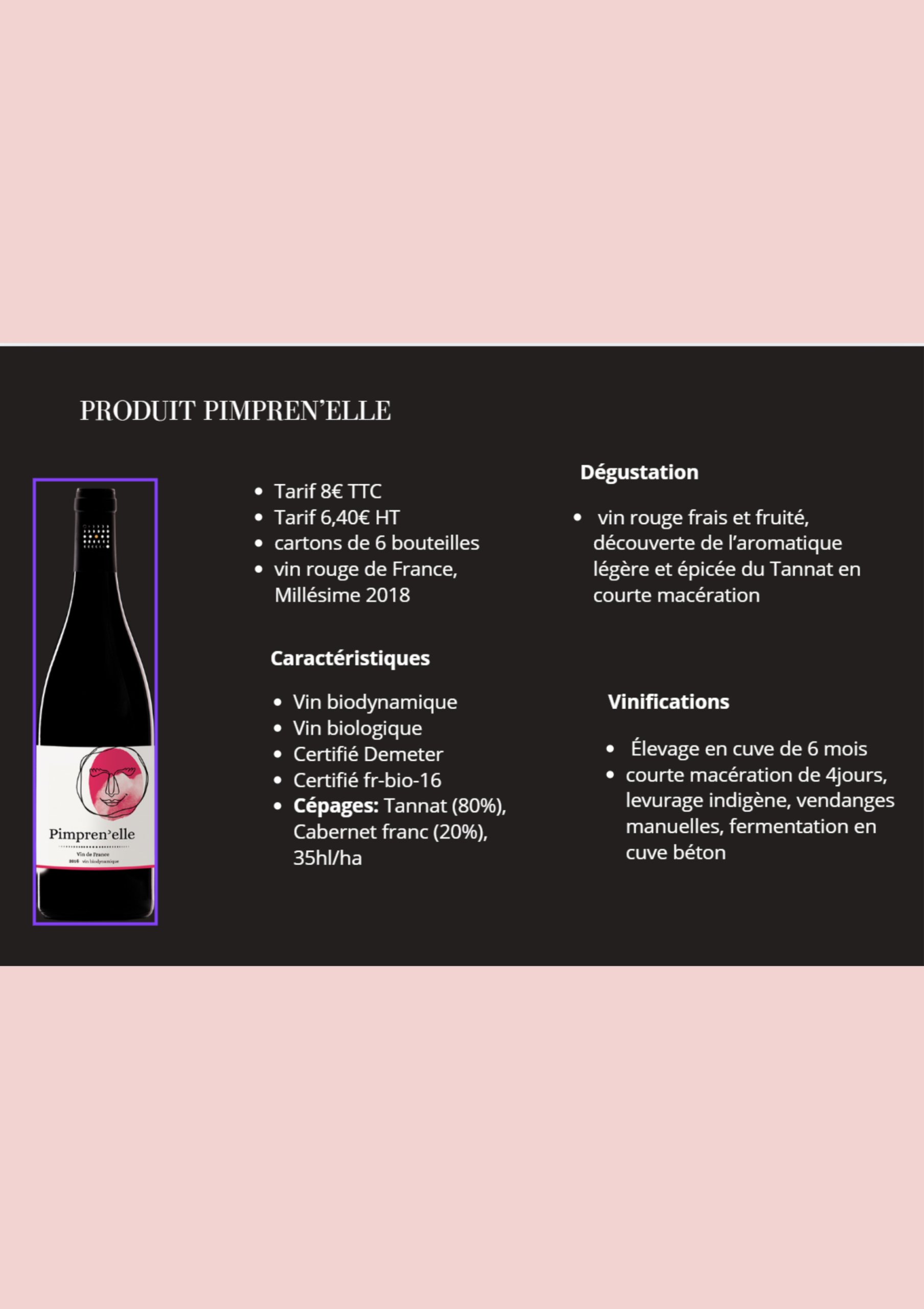 Analyse du marché et du produit : Étude approfondie du secteur du vin bio/biodynamique et mise en valeur des certifications (Demeter, Bio) et des caractéristiques techniques du produit « Pimprenelle ».